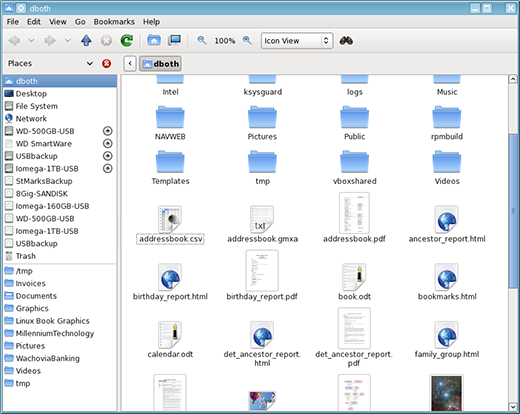 One thing I particularly like about Konqueror is that it provides an excellent high-level view of your directory structure, both in the sidebar and in the directory panels. This makes it easier to locate and delete files and directory trees that are no longer needed. It also enables easier navigation and reorganization of the directory structure.