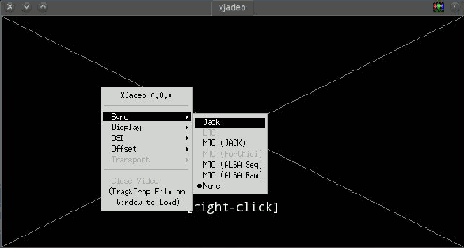 Start JACK either from a shell or with a frontend, like QJackCtl. Once JACK is running, start XJadeo and verify that it will use the JACK system as its clock source; right-click on the XJadeo screen and select Sync > JACK.