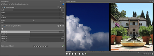 Notice in the Effect Stack that Maskomate is at the bottom of the stack. This is important, because Kdenlive uses a chain (or "stack") of effects that interact with one another even across video tracks.