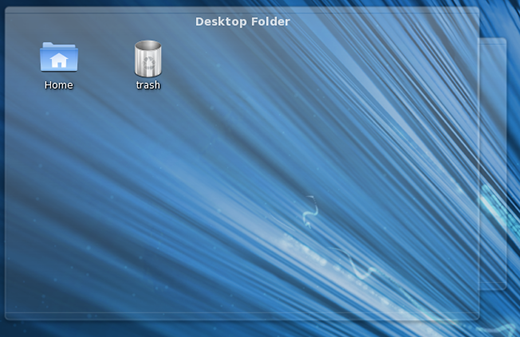 Like most Linux distributions, Fedora has a default file manager, which is currently Dolphin. The Linux desktop usually has an icon that looks like a little house—that's your home directory/folder. Click on the Home icon and the default file manager opens with your home directory as the PWD, or Present Working Directory. In current releases that use KDE 4.1 or above, the Home icon is located in the Desktop Folder along with the Trash icon, as shown below.