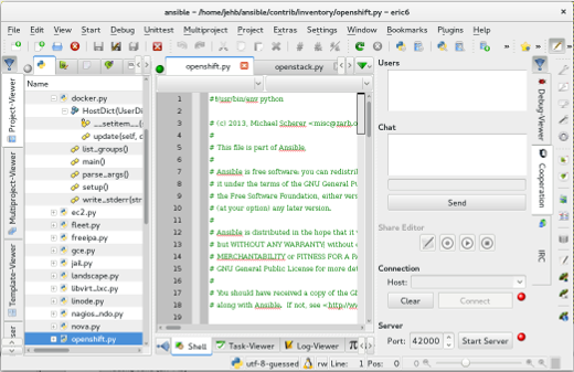 - Most extensible code editors are likely to feature Python support. For instance, Emacs can be a full-fledged Python IDE if you know which packages and configurations to use. The KDE editor Kate has syntax highlighting, code collapsing, and project directory support by default, plus further extensions to help along the way.